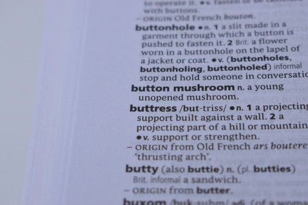 English Dictionary Page Print Close Up With The Word Meaning Of -buttress