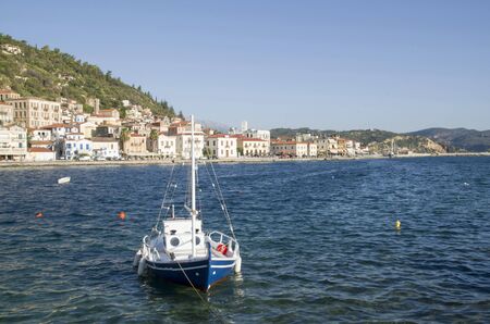 Thassos, Greece - May 5, 2018: Thasos port with boats and promenade view