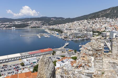 KAVALA, GREECE - JUNE 22, 2019: Panorama of city of Kavala from fortress, East Macedonia and Thrace, Greece