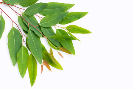 Eucalyptus leaves on white background.