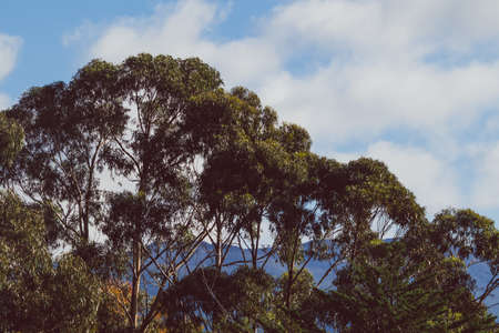 Blur effect of the eucalyptus many high into the sky in elevation clear dimly bright and sunny