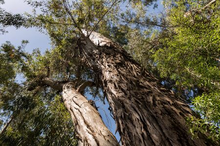 Very large eucalyptus trees in the park on a sunny day close-up