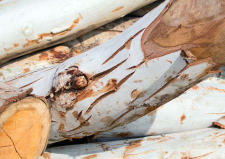 Wood eucalyptus truncated aside for transport. In the field eucalyptus.