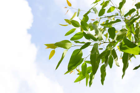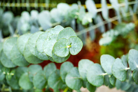 Close up of fresh green leaves of eucalyptus. macro shot of beautiful leaf