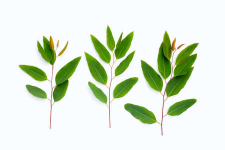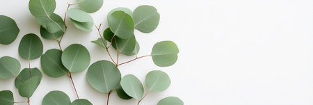 Eucalyptus with leaves pattern on side position provides copy space for text. background concept isolated white