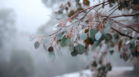 The Lemon scented gum in winter, chilling air envelops, a few lingering leaves tremble, still atmosphere