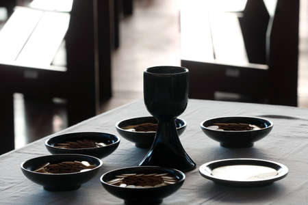 Concept of Eucharist or holy communion of Christianity. Eucharist is sacrament instituted by Jesus. during last supper with disciples. Bread and wine is body and blood of Jesus Christ of Christians.