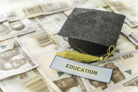 University Mortarboard academic cap on Nigerian Naira notes