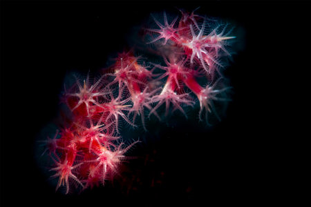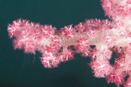 soft red teddybear coral on a tropical hard coral reef in Bali in Indonesia