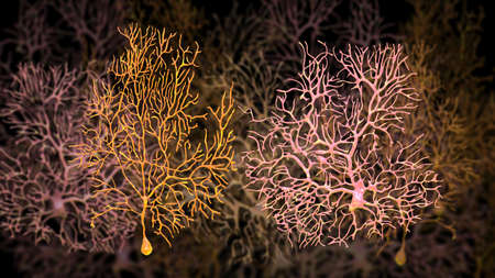 Purkinje neurons, GABAergic neuron located in the cerebellum, 3D illustration