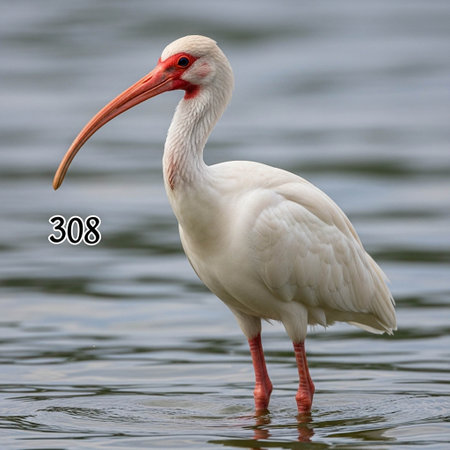 the american white ibis, a majestic wading bird, is beautifully captured in this stunning passport-sized photo, showcasing its striking white plumage, curved bill, and vibrant red eyes, taken with a 50mm lens, highlighting the bird's intricate details in its natural habitat. ai generated