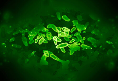 Scientific image of motile flagellated bacteria. Bacterium Stenotrophomonas maltophilia, 3D illustration. Bacilli that cause nosocomial infections, endocarditis, wound infections, bacteremia and other