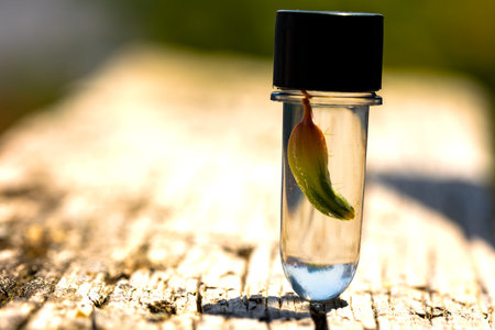 Coontails or hornworts freshwater algae Ceratophyllum by microscope. Cell structure of algae and fouling by protozoa supermacro
