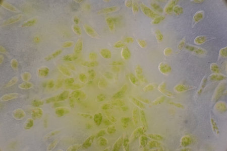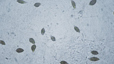 Euglena is a genus of single-celled flagellate Eukaryotes under microscopic view for education.