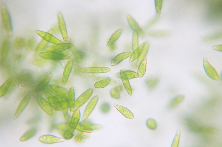 Euglena is a genus of single cell flagellate eukaryotes under microscopic view for study.