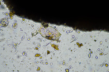 fungal hyphae and soil fungi in a soil sample, showing the living soil form a farm