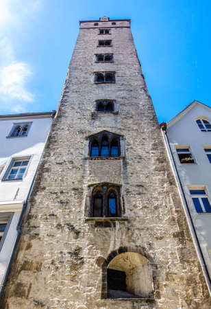 The medieval stone Mother Tower is located in Landsberg am Lech in Bavaria, Germany