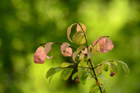 Beautiful spindle plant, Latin name Euonymus europaeus in the wild, picture tasks in Belgium