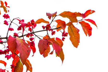 Beautiful autumn background is with the sprig of spindle tree Euonymus europaeus