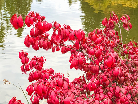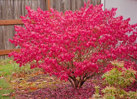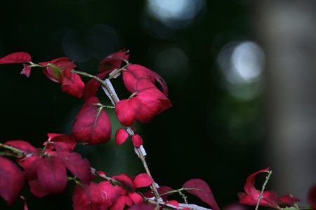 Euonymus alatus red leaves in autumn
