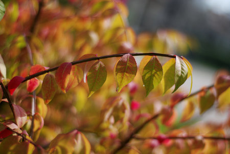 Branch in the garden in autumn with dark red leaves