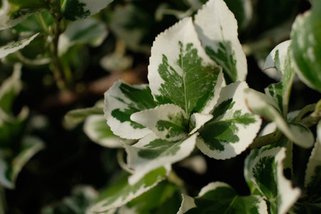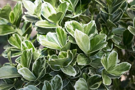 Euonymus white-bordered, beautiful leaves of a garden plant close-up
