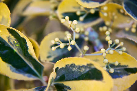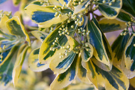 Variegated Japanese spindle tree hedges, leaves and Celaseeds. straceae evergreen tree.