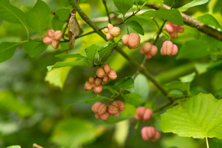 Beautiful Spindle Tree Fruits with Seeds Macro View