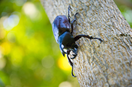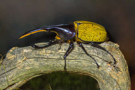 Rhinoceros Beetle on wood in the forest