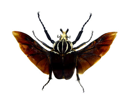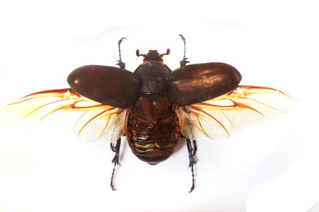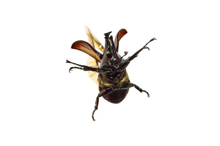 Beetle with wing spread isolated in white background