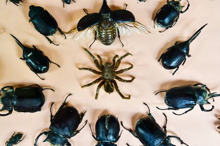 Beetles, Insects, Bugs are a group of insects form the order Coleoptera, Animal samples for education in laboratory.