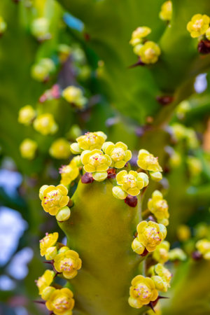 euphorbia cactus with yellow flower on farm for harvest