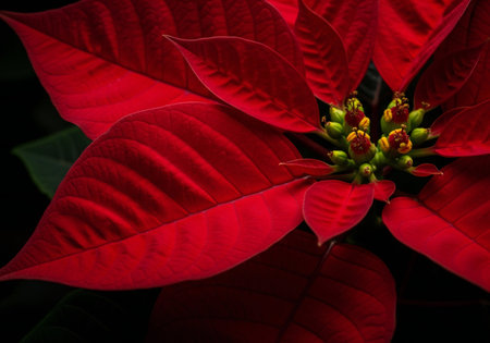 Professional macro close up of beautiful red poinsettia nochebuena flower, christmas holydays