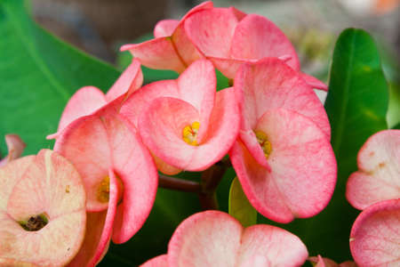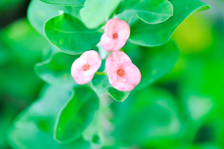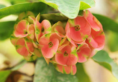Christ Thorn, Euphorbia milii or Euphorbiaceae or pink flower