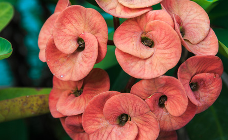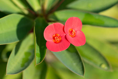 close up Crown of Thorns or Christ Thorn flower in nature garden