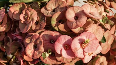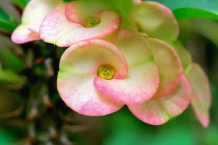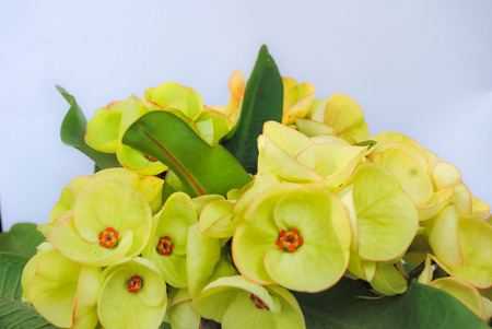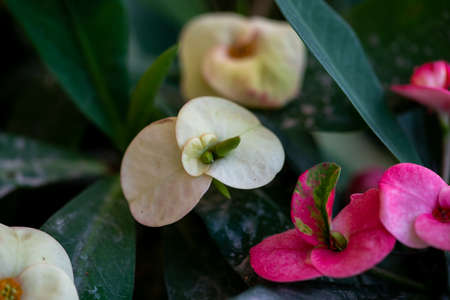 Euphorbia milii flower close up for background , poi - sian flowers
