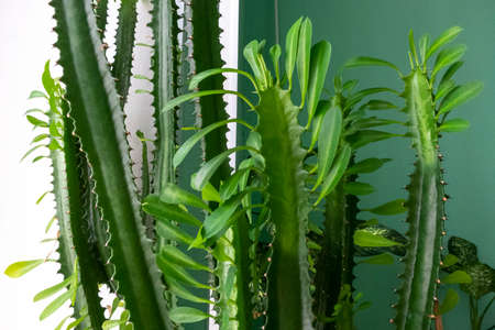 Indoor flowers - green cacti close-up