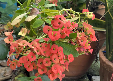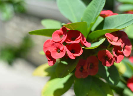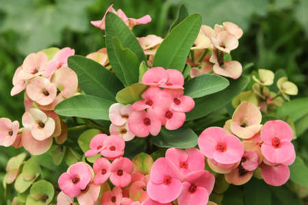 Euphorbia milii Desmoul flower are blooming in the garden