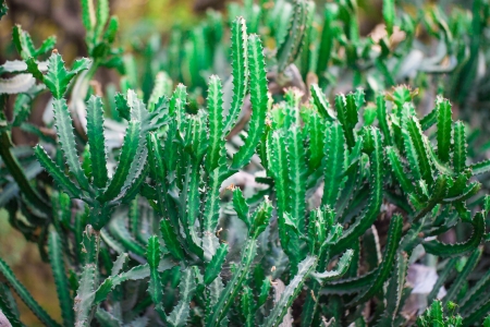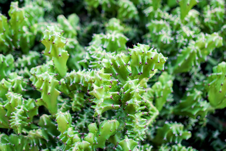 Macro of a candelabra cactus, Euphorbia lactea, selective focus