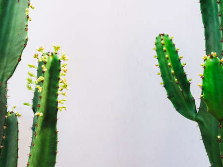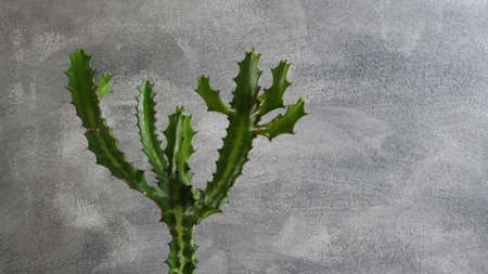 Green cactus on gray wall background.