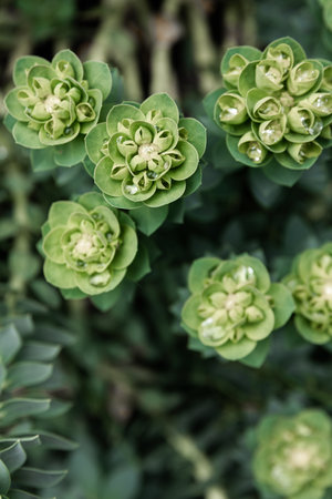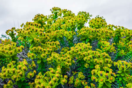 Closeup of the Mediterranean spurge (Euphorbia characias) in the garden