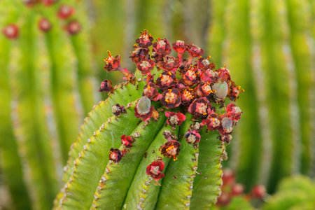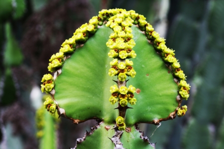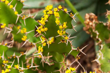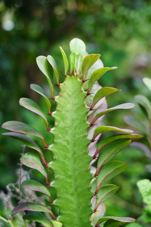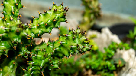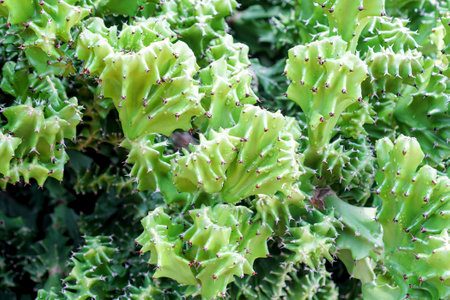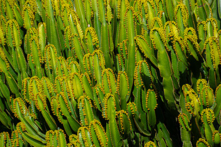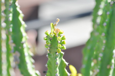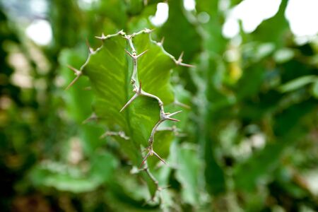 Macro of a candelabra cactus, Euphorbia lactea, selective focus