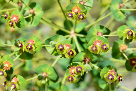 close up of a Euphorbia Helioscopia in spring in Grancona, Vicenza, Italy