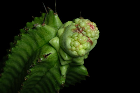 Close up shoot of Euphorbia Horrida f. monstruosa, milk barrel cactus plant. Isolated on black background. image photo