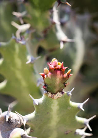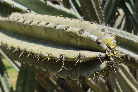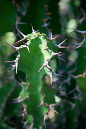 Cactus (euphorbia resinifera) with prickly thorns as found in nature, selective focused