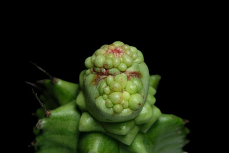Close up shoot of Euphorbia Horrida f. monstruosa, milk barrel cactus plant. Isolated on black background. image photo