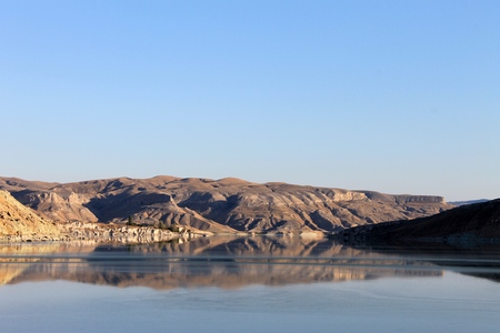 A shot of the lake in the middle of the mountains in Halfeti, Turkey