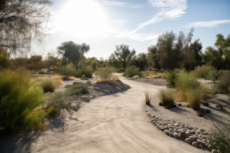 dry and drought-stricken park, with native plants thriving in harsh conditions, created with generative ai