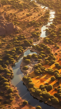 Generative AI : Desert in Australia Aerial view of desert Elements of this image furnished by NASA Selective focus included