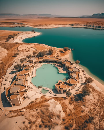 Generative AI : Aerial view of Limnothalassa Karats lake and Patella lake along the Thracian Sea East Macedonia and Thrace Greece